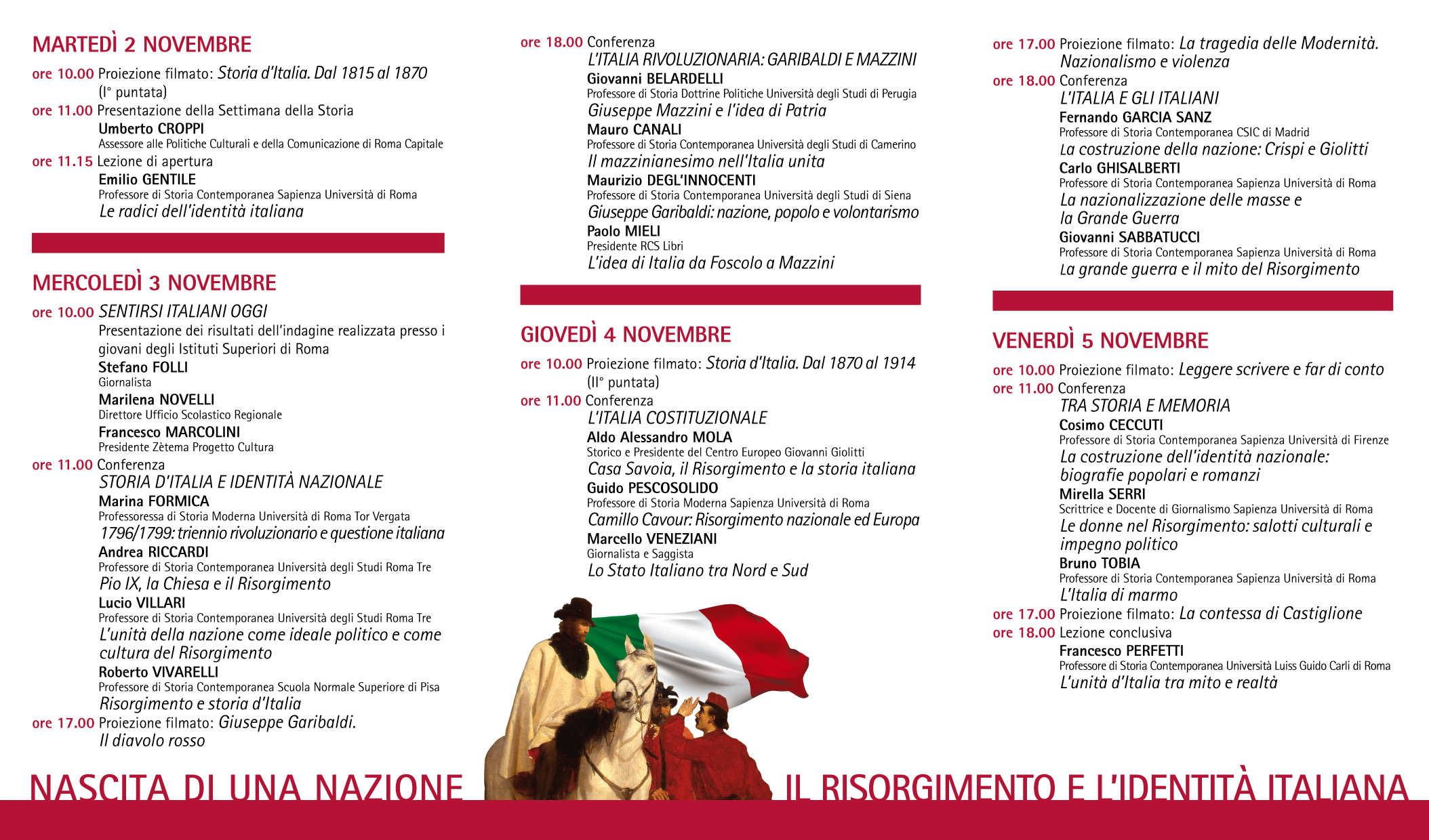 ore 11.00 conferenza “STORIA D’ITALIA E IDENTITÀ NAZIONALE” con:
